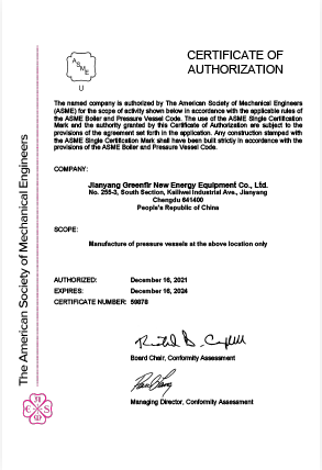The company has obtained the A2 equipment design and manufacturing qualifications,as well as the U-stamp certification authorized by the American Society of Mechanical Engineers(ASME), and has established a comprehensive management system based on ISO 9001:2015, ISO 14001:2015 and ISO 45001:2018.
